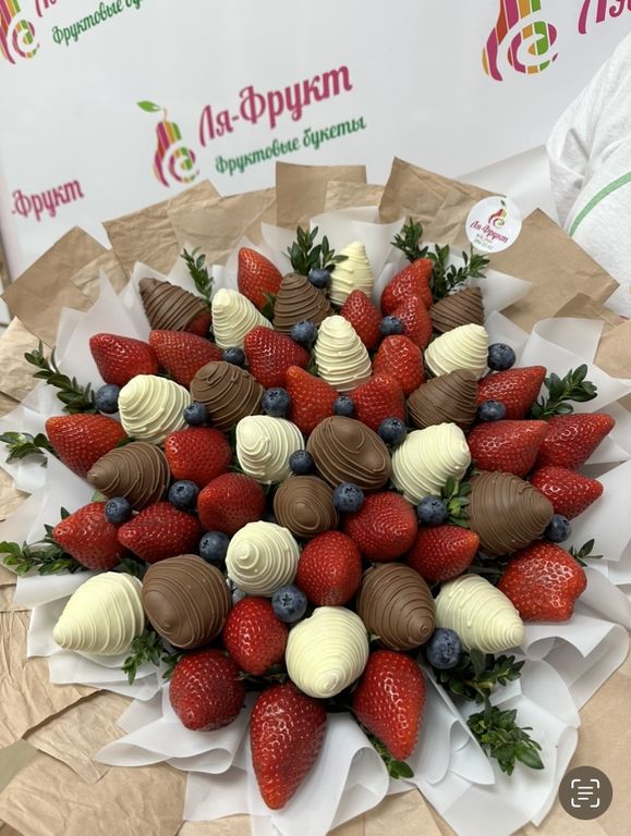 2 кг клубники в белом и молочном шоколаде, голубика.